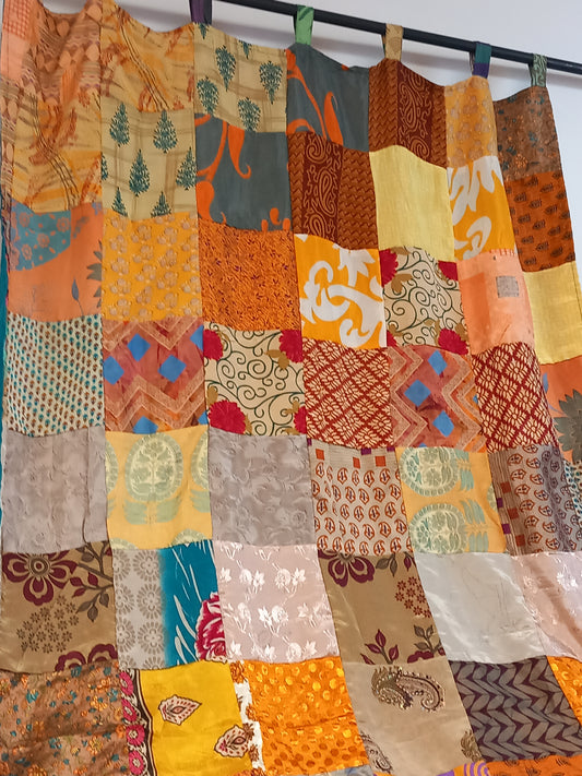 CORTINA CONFECCIONADA REVERSIBLE CON TRABILLAS EN PATCKWORK,PIEZAS VIBRANTES EN COLOR DE LA INDIA.ENVÍO GRATIS. (Copia)