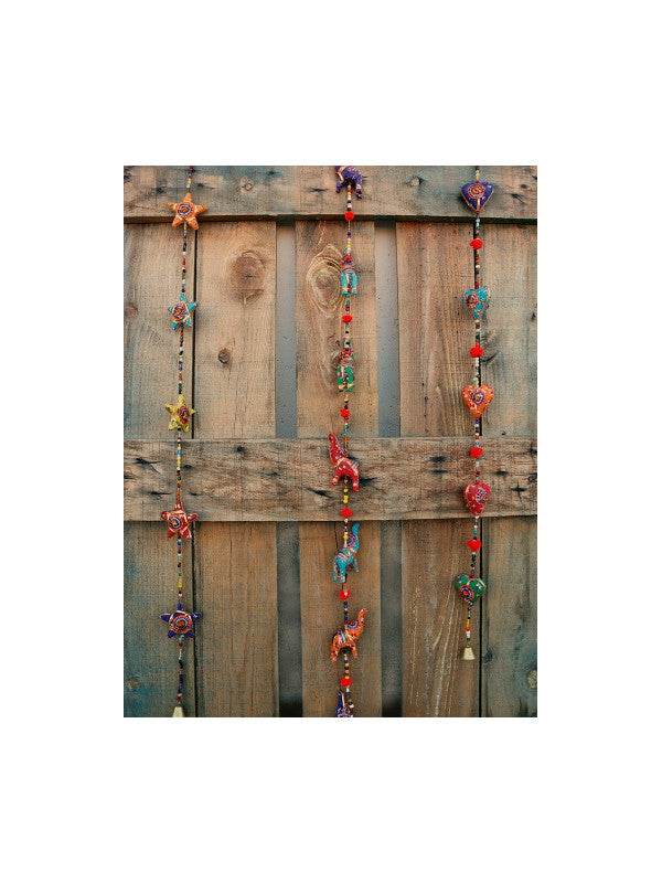Se intercalan con pequeñas cuentas y pompones, en su extremo tiene una campana.
