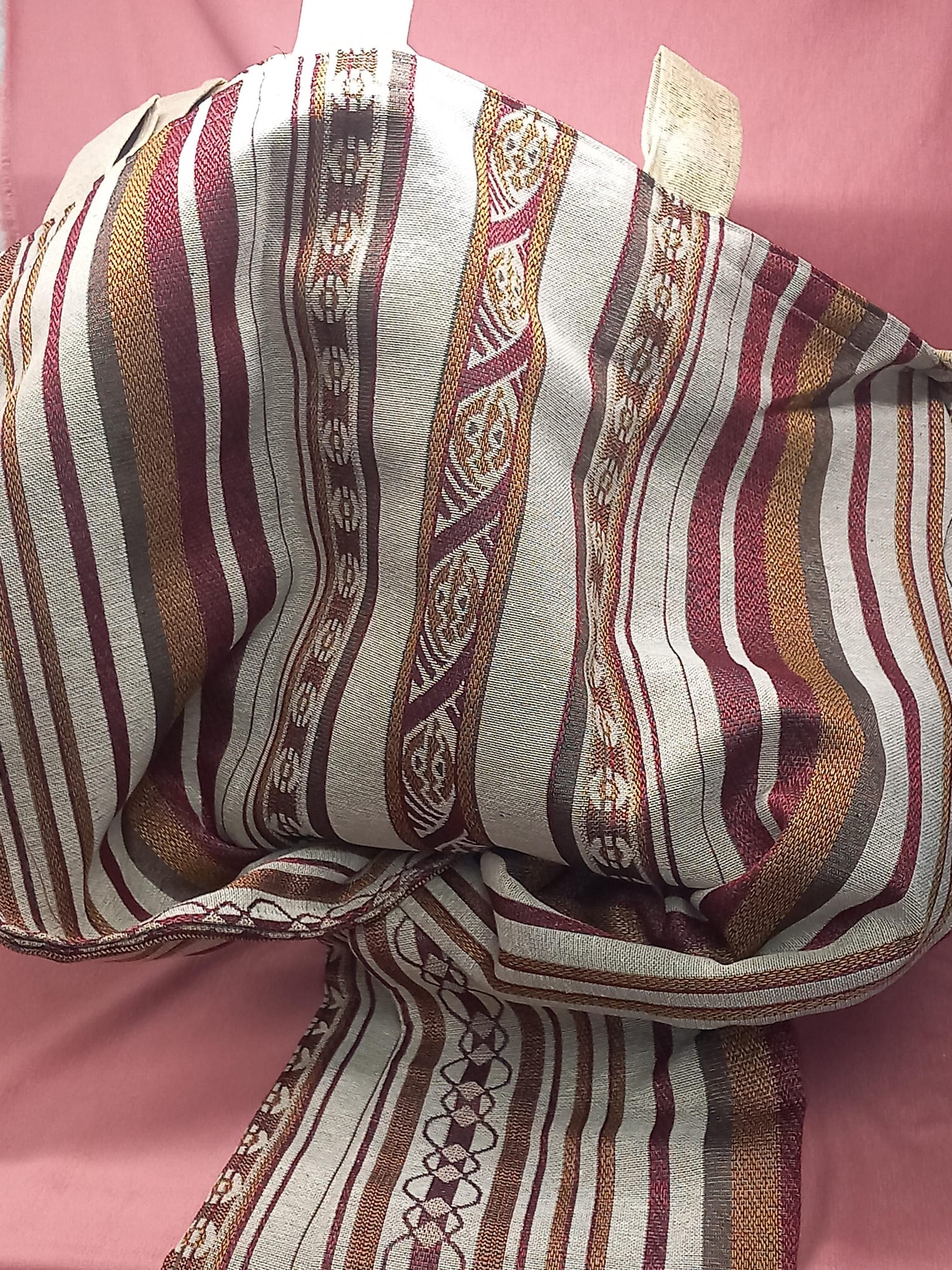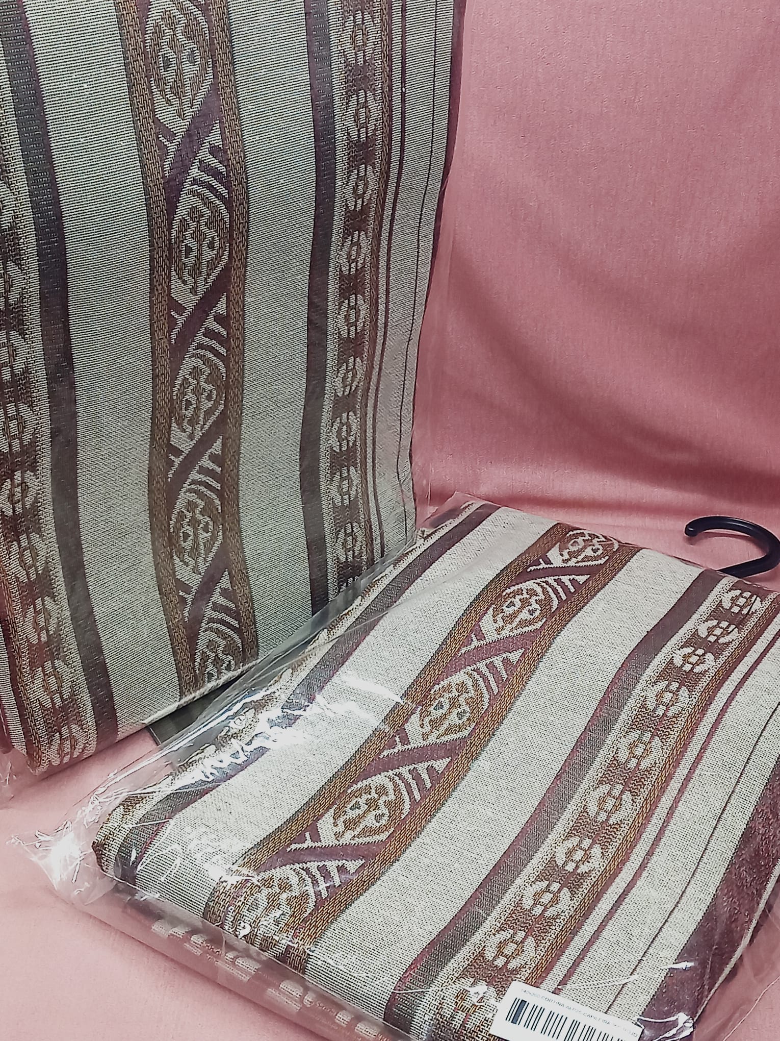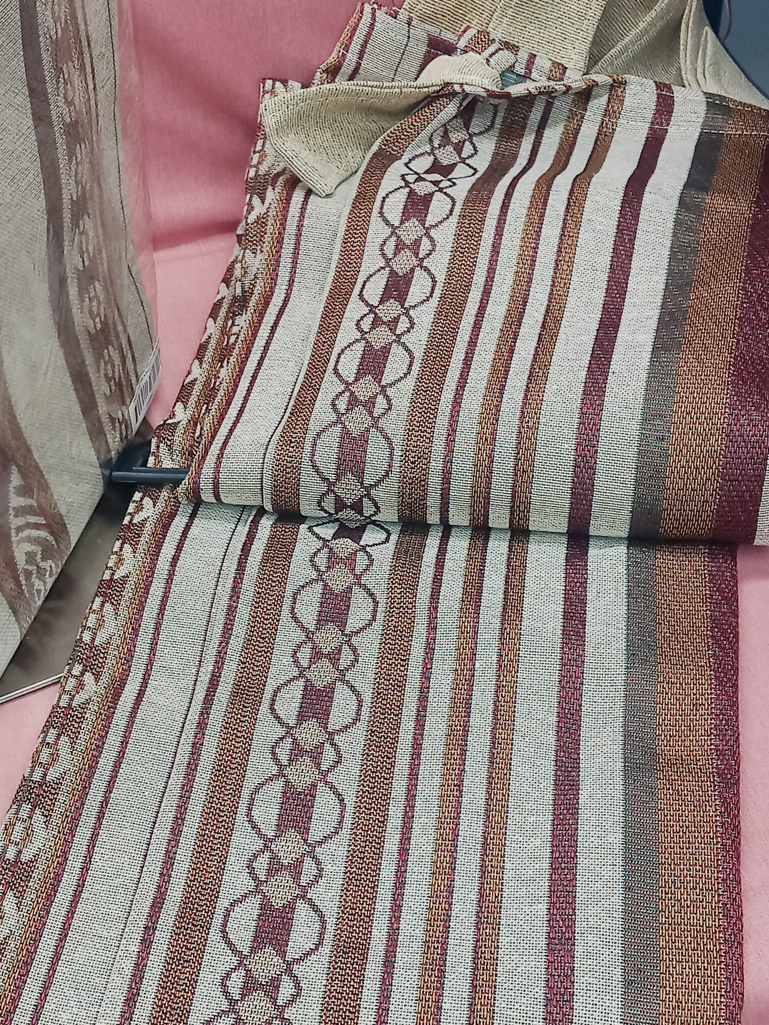 Cortinas Alpujarreñas de estilo rústico con un elegante diseño Jacquard con rojo.