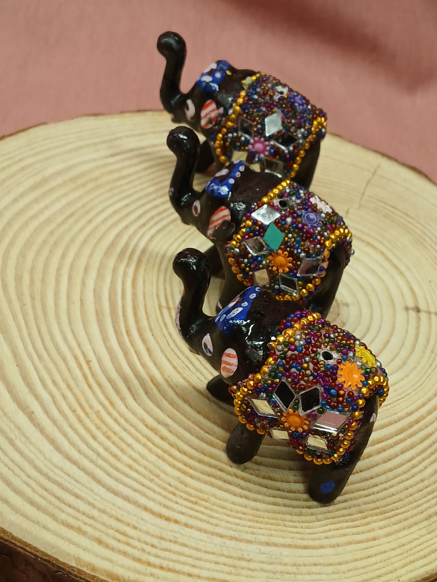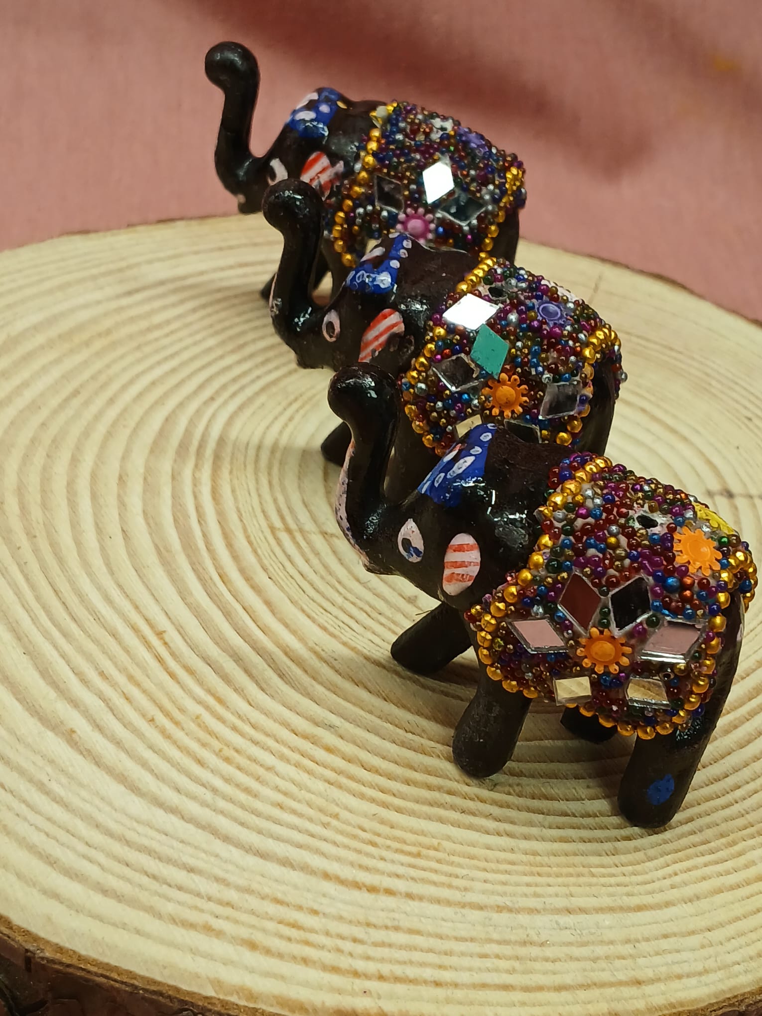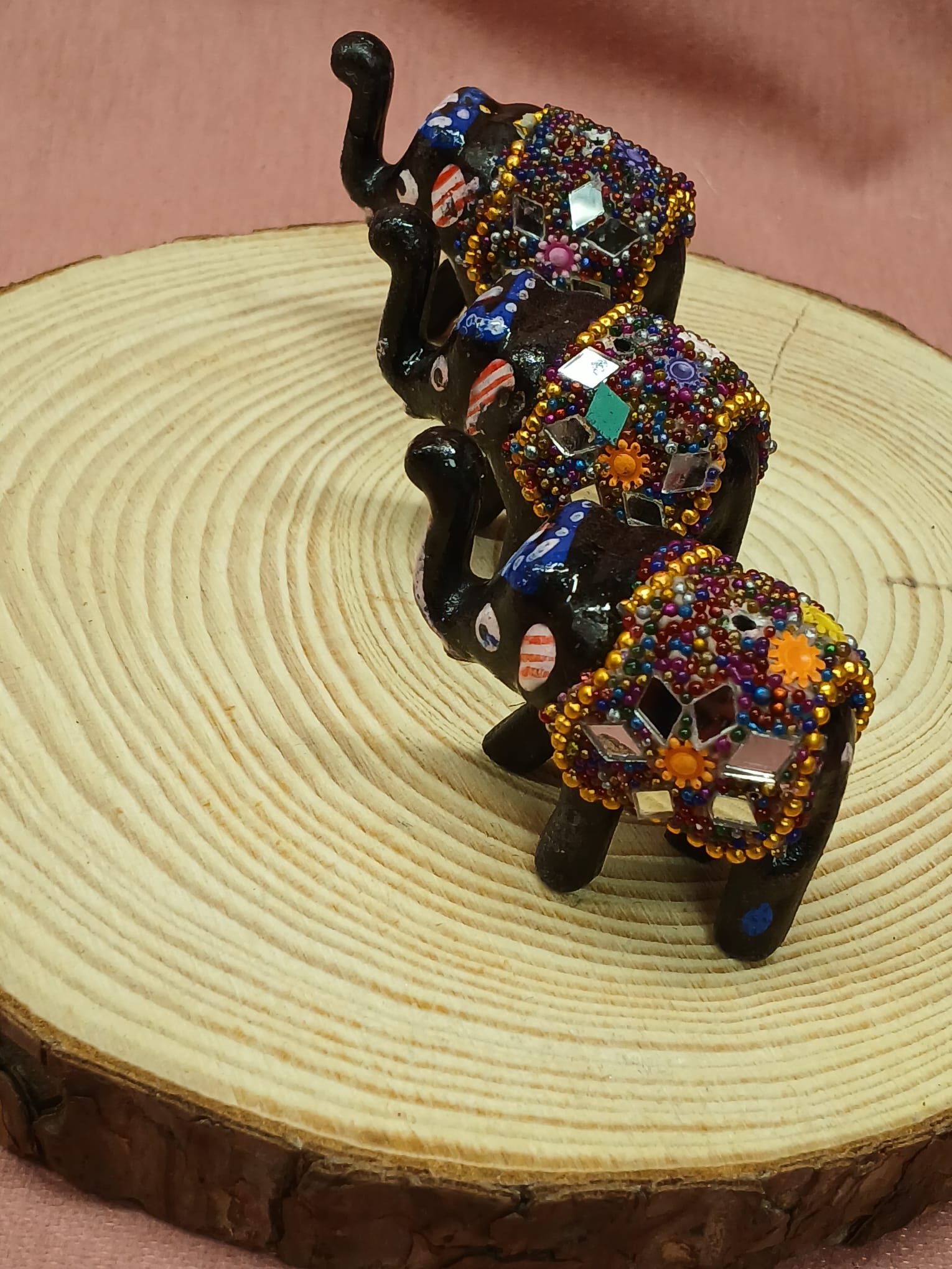 Figuras de elefantitos de la suerte con detalles y espejos.