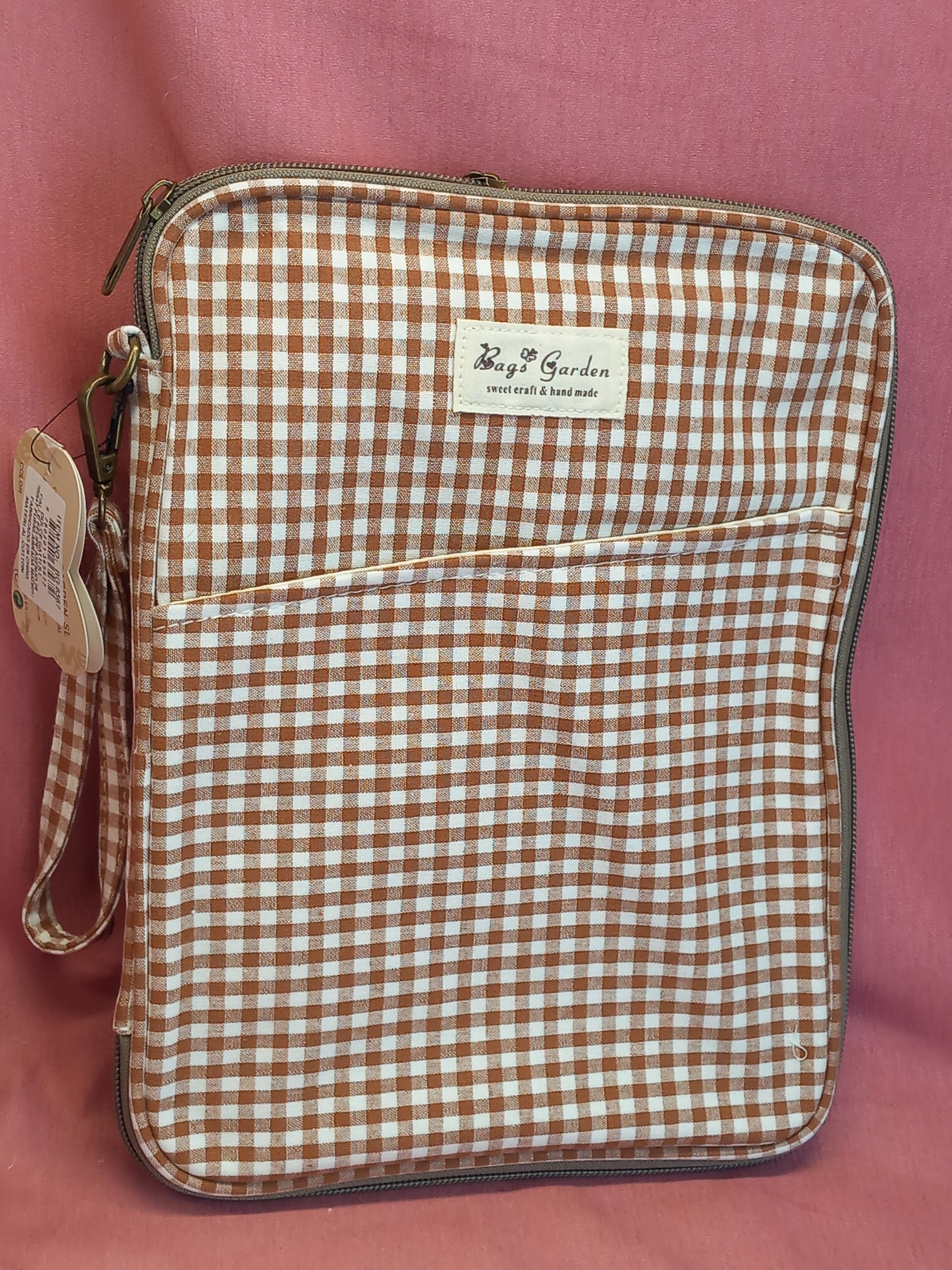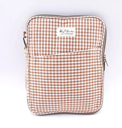 Funda Ipad algodón vichy camel ,está fabricado en algodón. No está resinado, así que su tacto es más suave y delicado. Acolchado en guata con forro interior crudo liso.