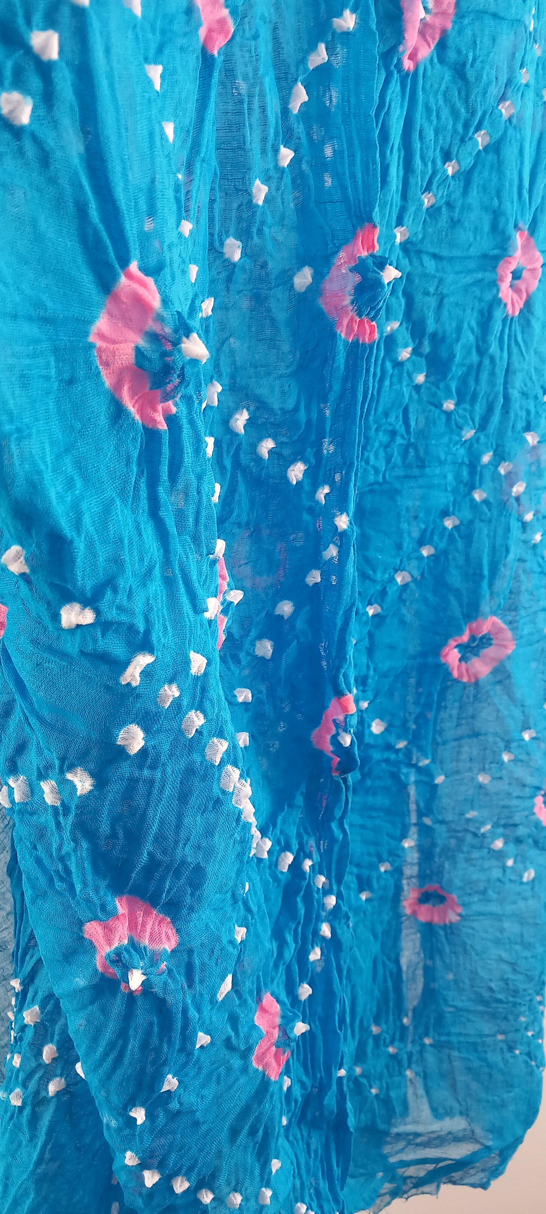 Exclusivo, artesanal y lleno de luz, el multiposición Dupatta Bhandani ALGODÓN NATURAL es ese complemento que transforma cualquier look en algo especial. No es sólo un accesorio es una historia que puedes llevar sobre los hombros,anudar en el cabello o dejar que baile el viento.