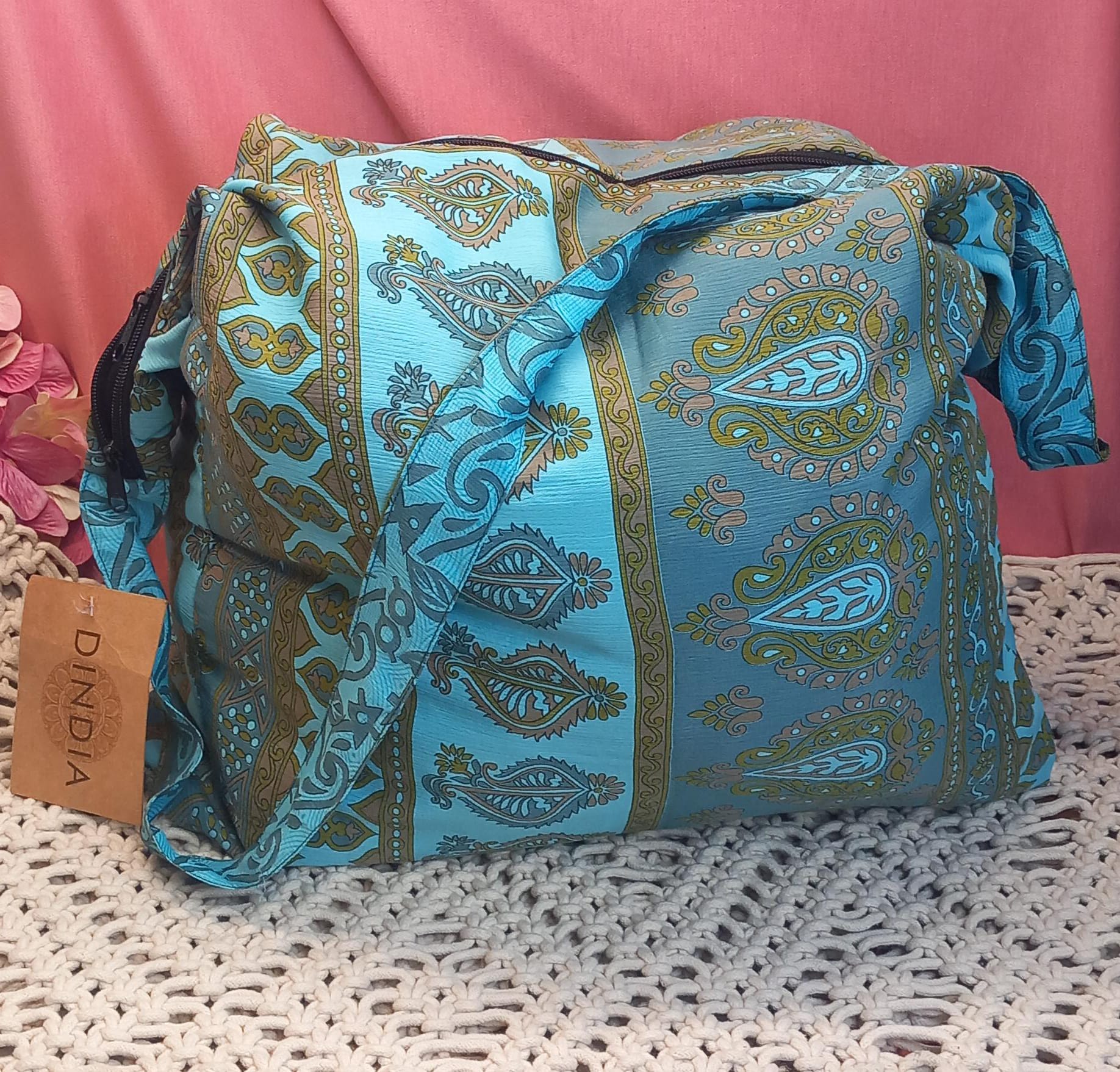 Bolso india de escapada, fin de semana,playa,montaña, gimansio...Con cremallera.