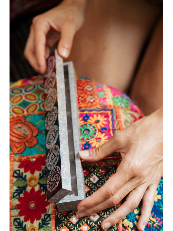 Una pieza decorativa y espiritual que se convierte en protagonista. El incensario box 7 Chakras está realizado artesanalmente en piedra esteatita, con forma de caja rectangular que canaliza el humo del incienso de forma elegante y mística. Cada uno de los chakras está representado en color, haciendo de este objeto una herramienta de equilibrio energético y un elemento decorativo muy atractivo para tu clientela más espiritual.