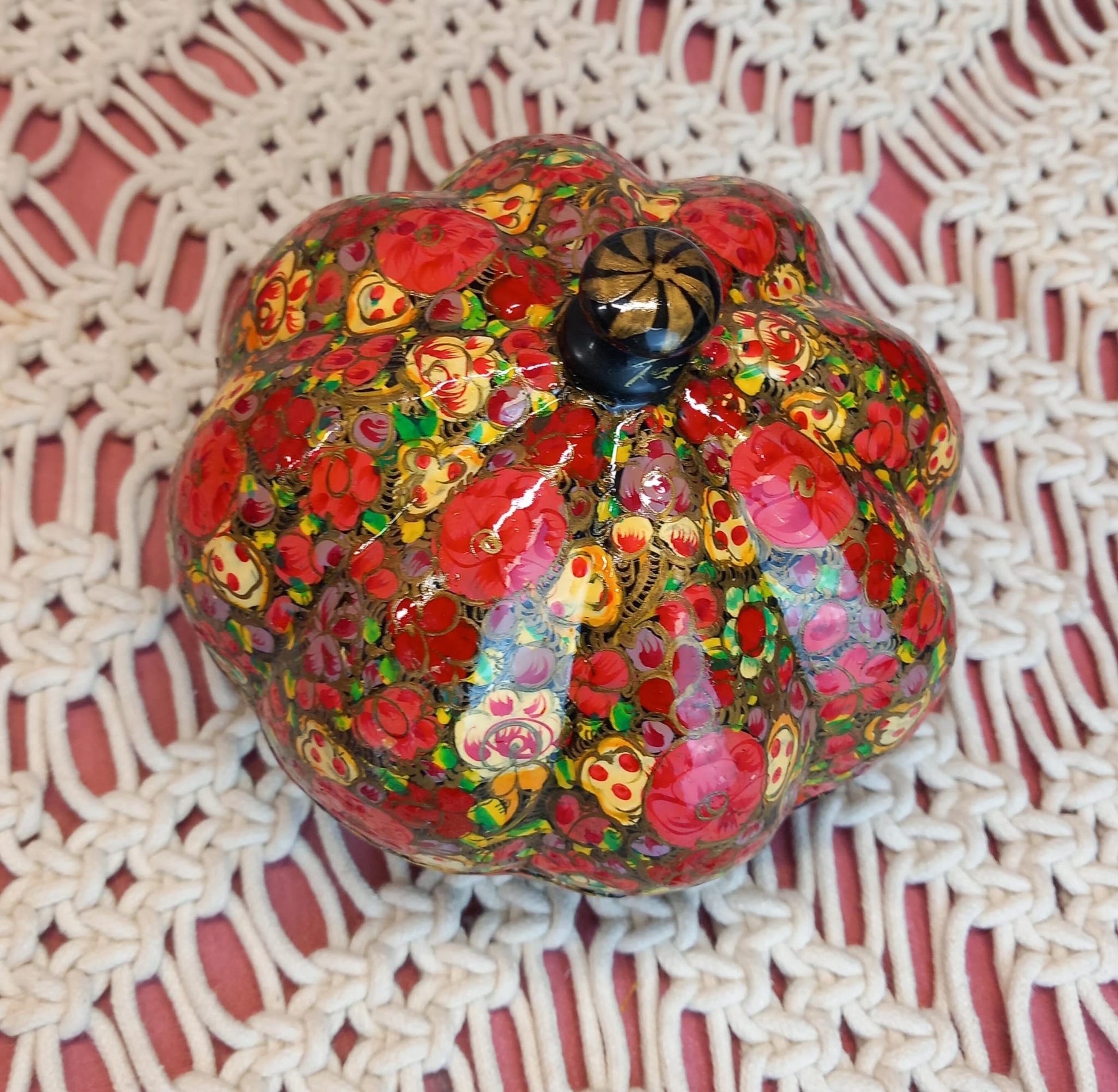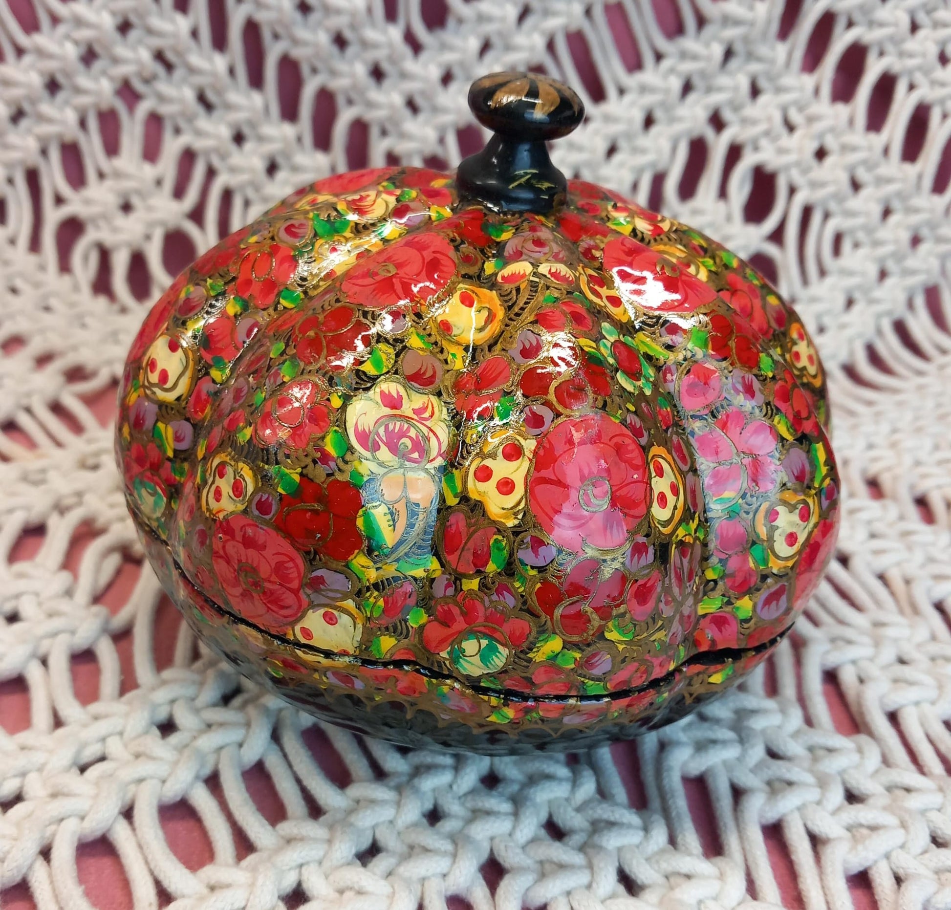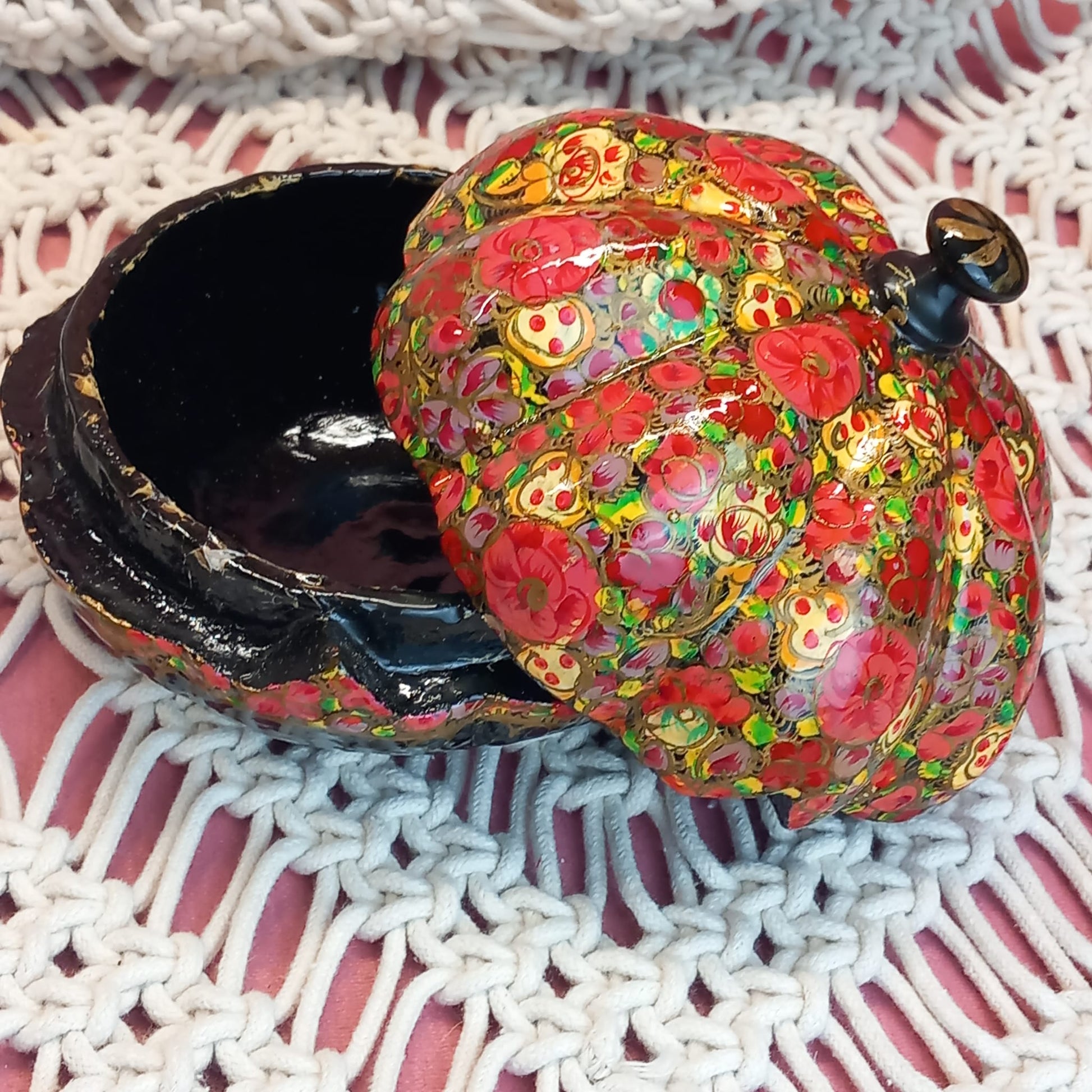 Caja artesanal multicolor en forma de calabaza. Artesanía India.Hecho a mano.