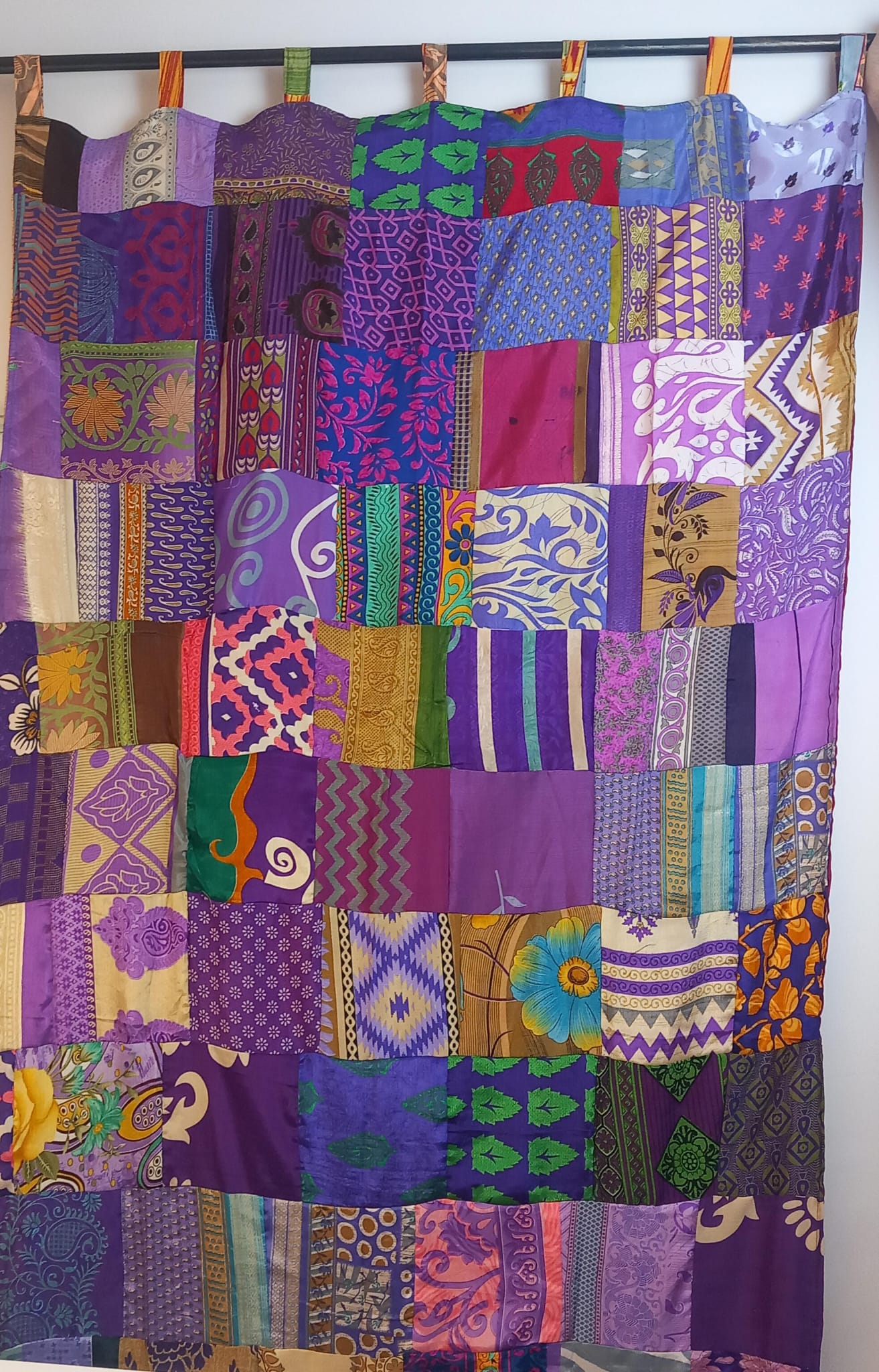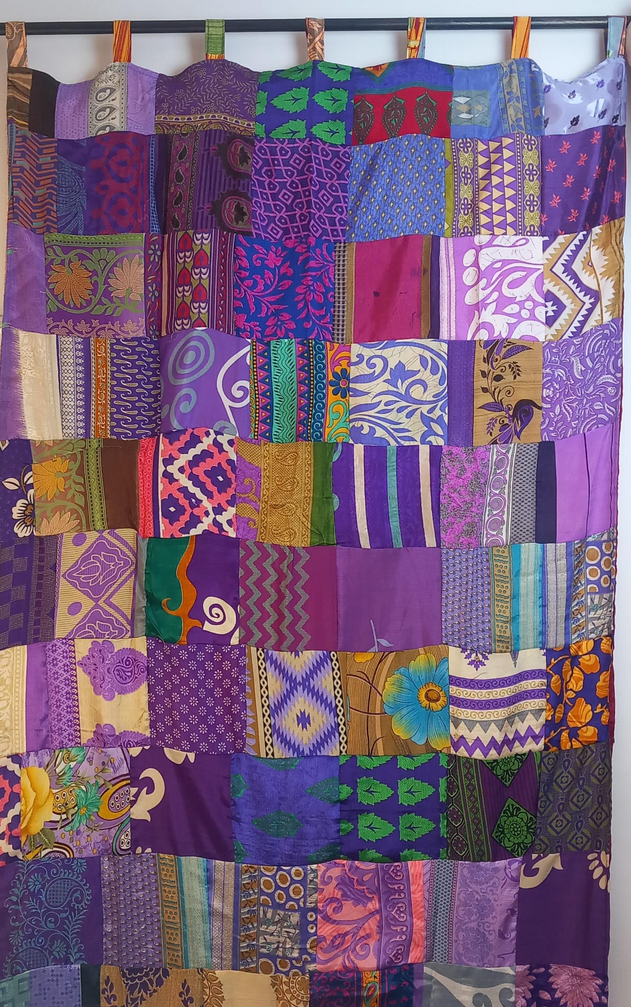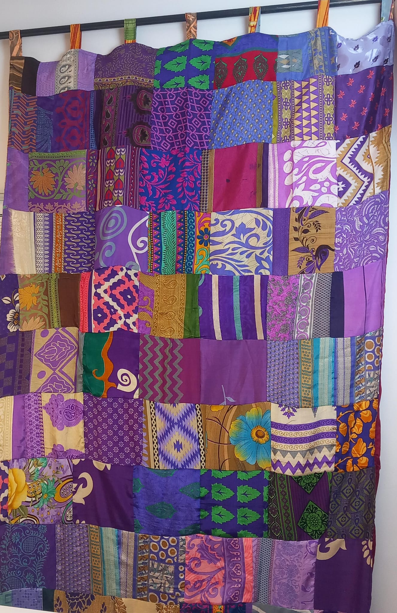 Cortina confeccionada individual de tela sedosa primera calidad de saree con trabillas