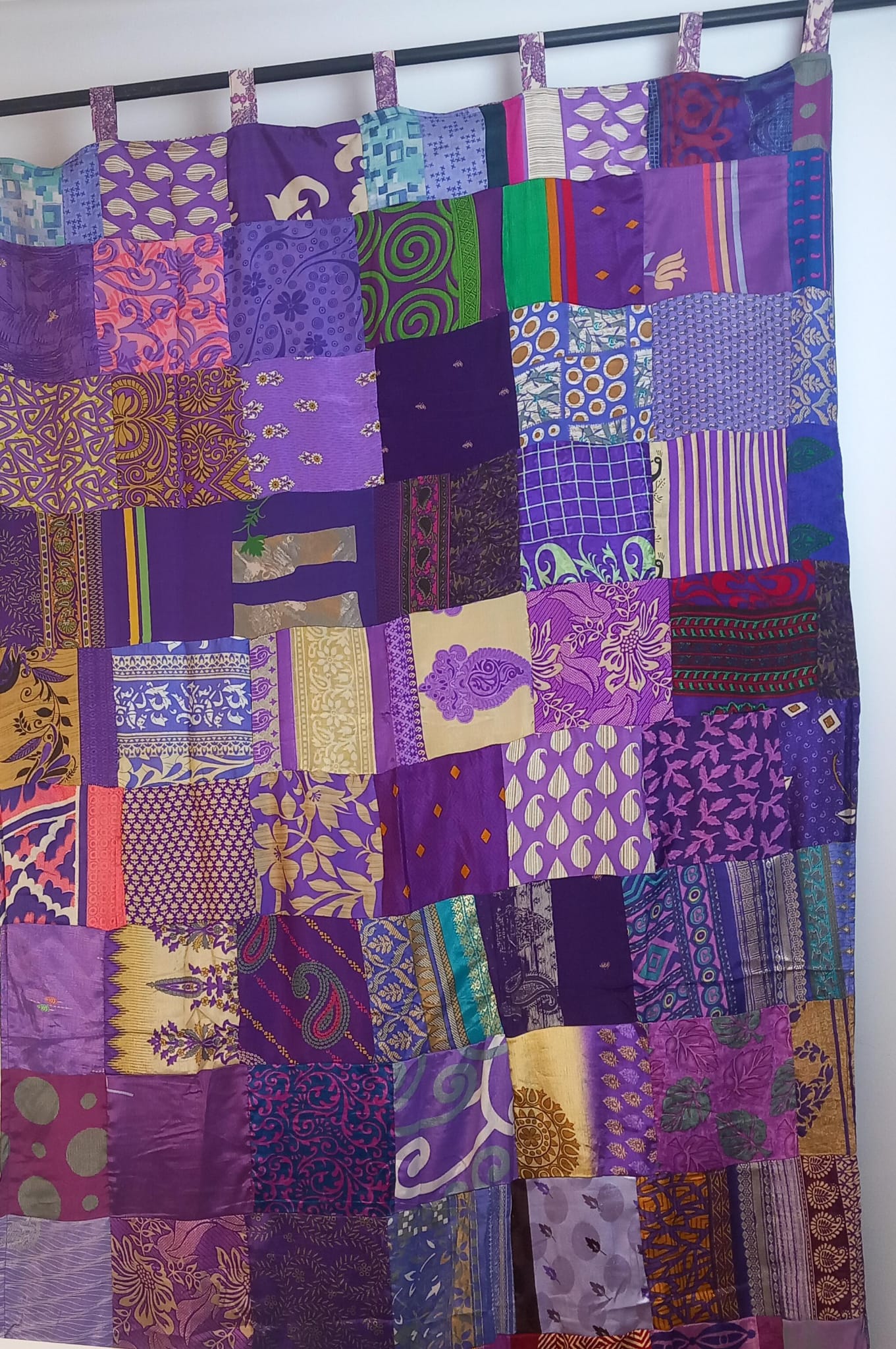 Cortina confeccionada individual de tela seda primera calidad de saree con trabillas
