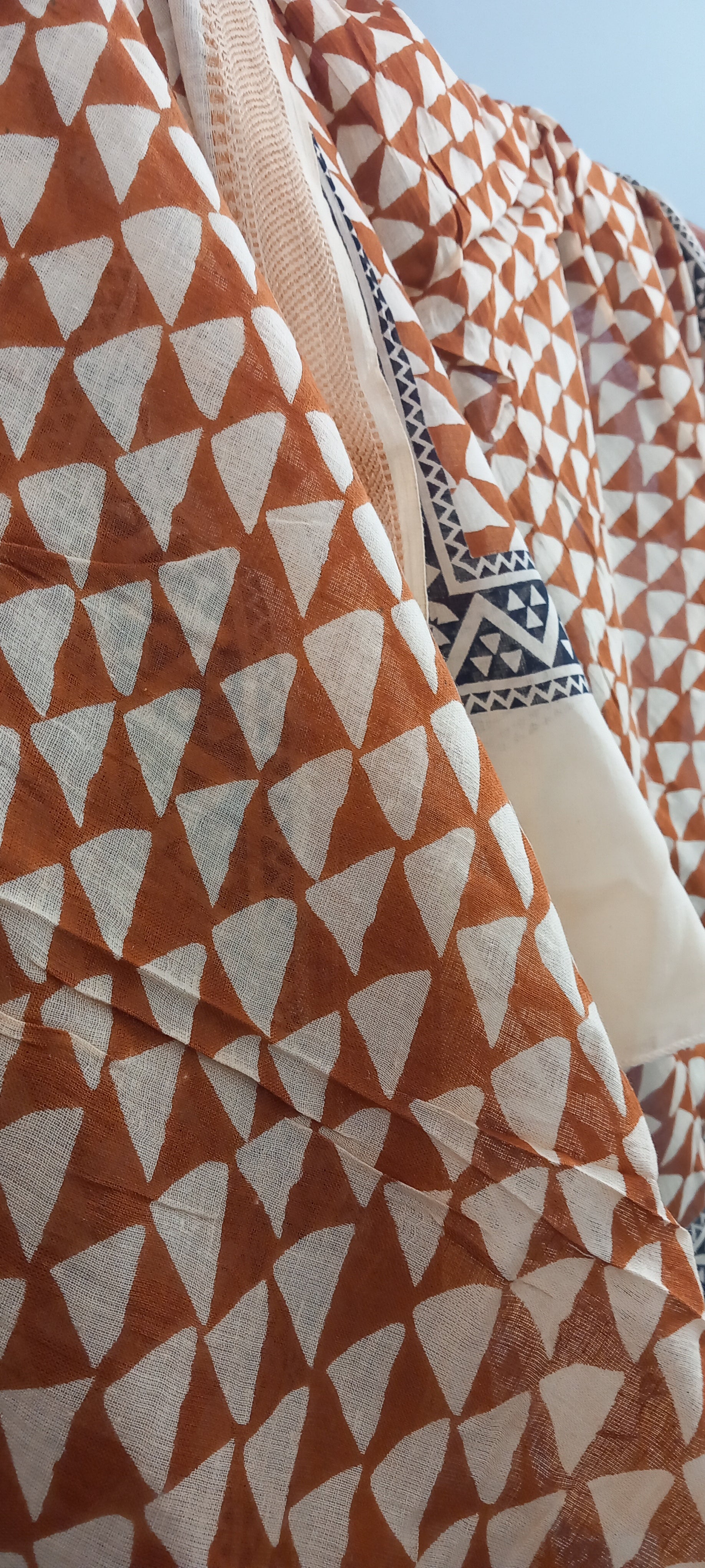 La Colección Bagru rinde homenaje a la técnica milenaria del block print, una artesanía que combina maestría y diseño en cada pieza. Elaborada en algodón, esta colección destaca por su perfecta armonía de colores y estampados, reflejando la riqueza cultural de Guyarat y Rajastán. Cada diseño es único, impregnado de la dedicación de los artesanos que mantienen viva esta tradición. Ideal para quienes buscan complementos que transmitan autenticidad y cuenten historias a través de sus patrones. Lleva contigo un pedazo de la India más auténtica, donde la artesanía y la elegancia se encuentran.