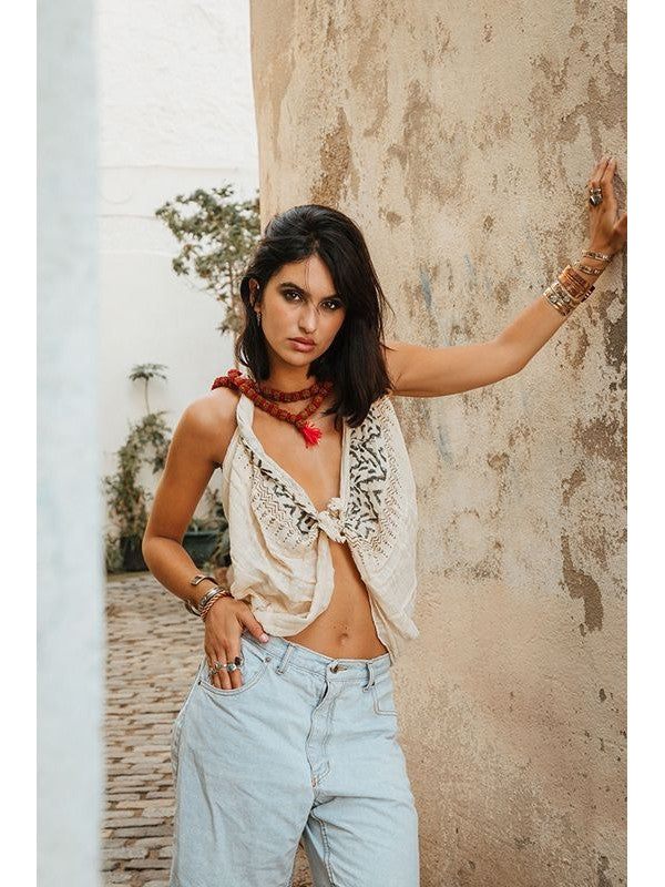 Es multiposición y algodón 100%natural. SALAPP BLOCK PRINT. PIEZA ARTESANAL.