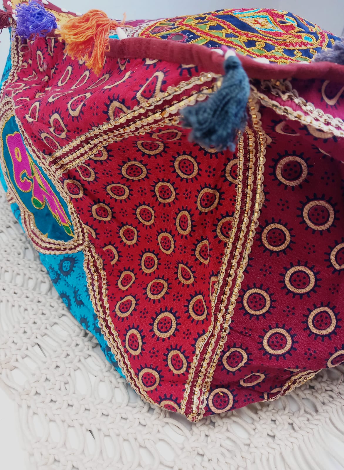 Este modelo esta elaborado artesanalmente en algodón y bordado con hilos de colores.