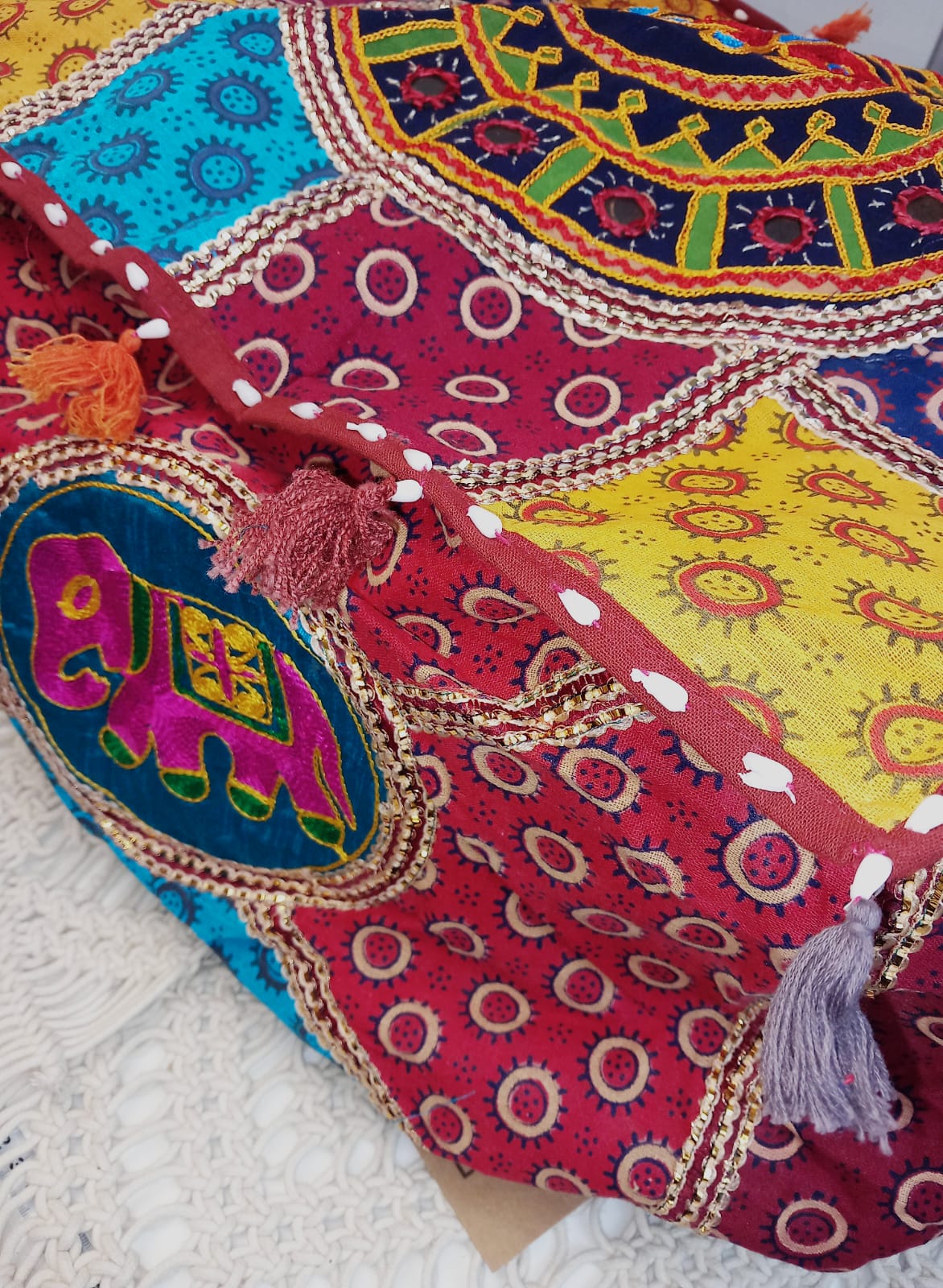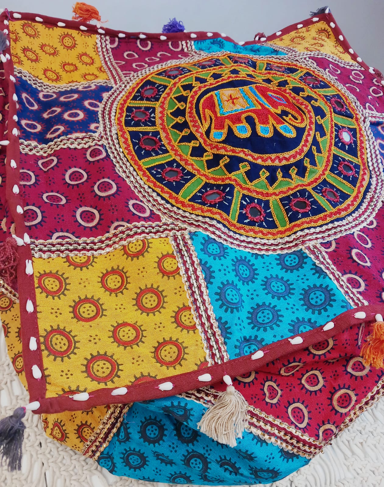 Puff cuadrado elefantes Iro India cuadrado 50cm con relleno 29.99€,envío gratis.Precio sin competencia.
